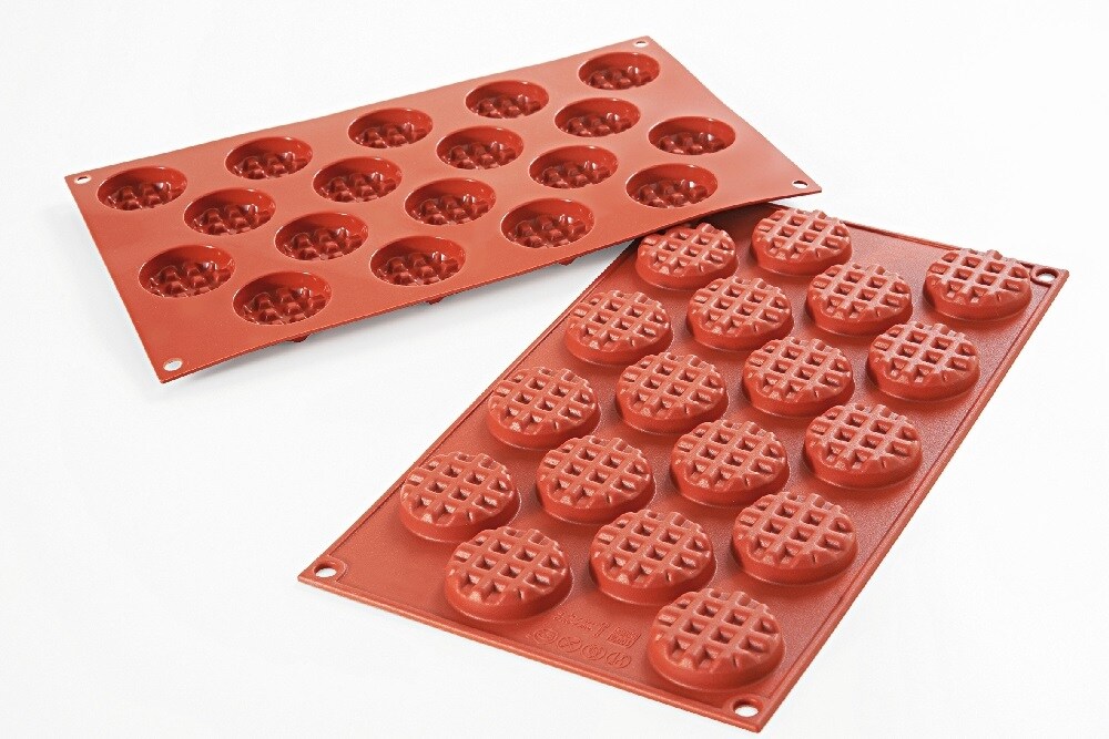 Premium-Silikonbackform 18 x Waffel rund 40 x 12 mm in Gastronomie-Qualität