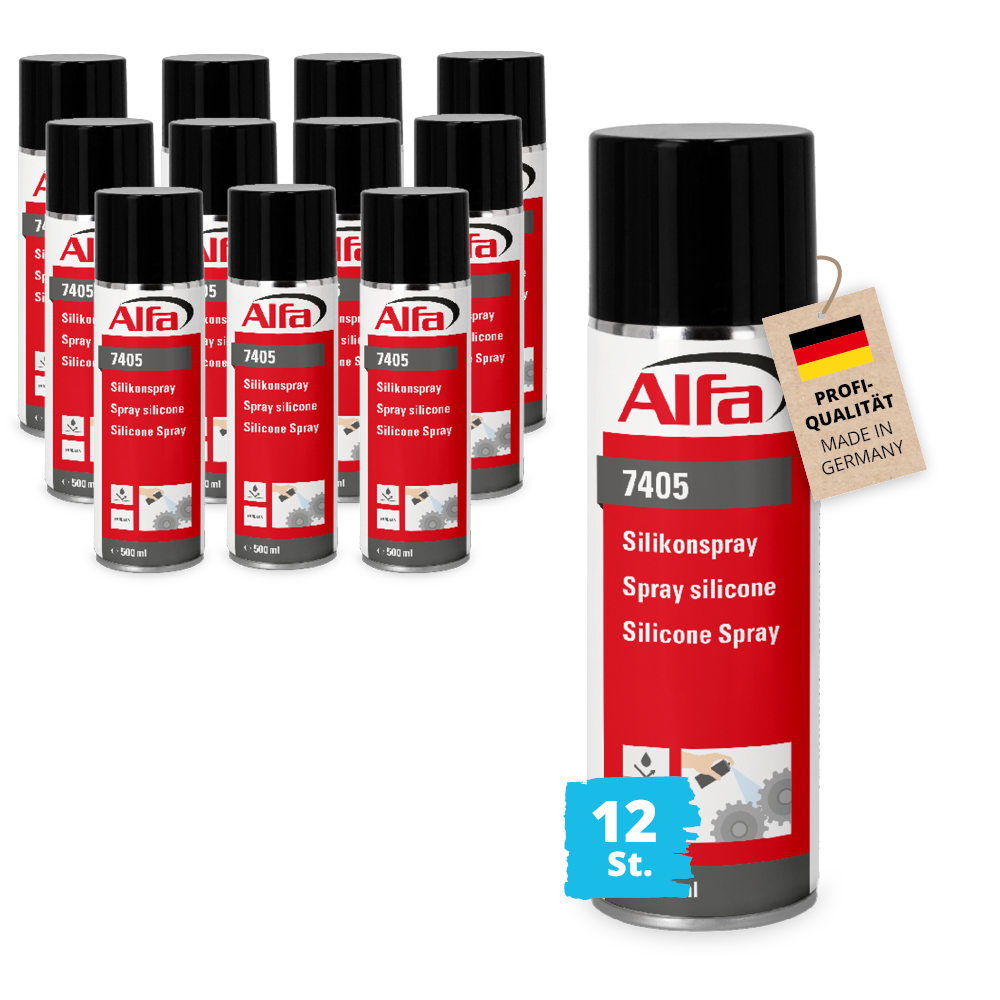 12x Alfa Silikonspray 500 ml Oberflächenschutz Gleitspray Trennspray Pflegemittel Schmierstoff Schmieröl Sprühfett Silikon Fett Trennmittel