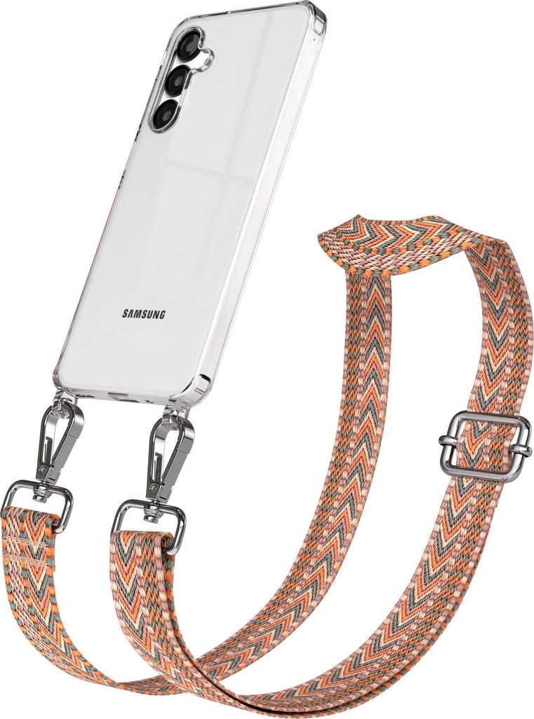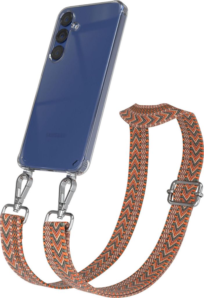 Samsung Galaxy S25 Plus / S24 Plus Chain Eyelets Slim Neck Strap Set Zig Zag Orange - Green 9 Metall Silver