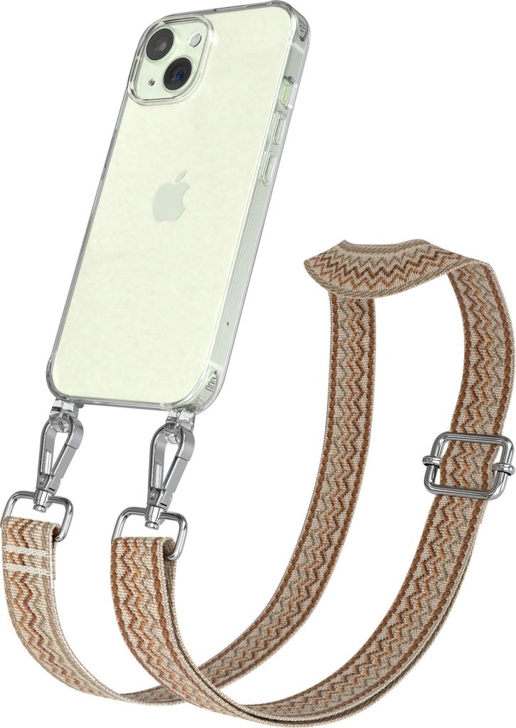 Apple iPhone 15 Chain Eyelets Slim Neck Strap Set Wave Style 07 Beige/Brown 02 Metall Silver
