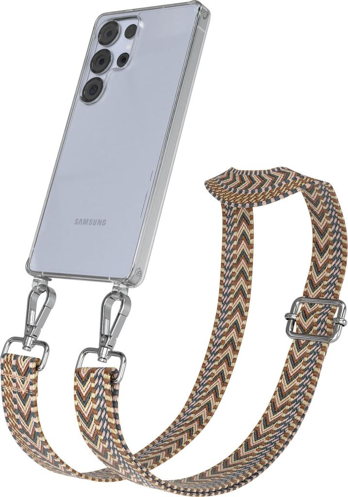 Samsung Galaxy S25 Ultra Chain Eyelets Slim Neck Strap Set Zig Zag light Brown - Brown 2 Metall Silver