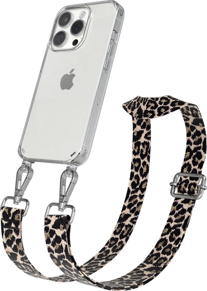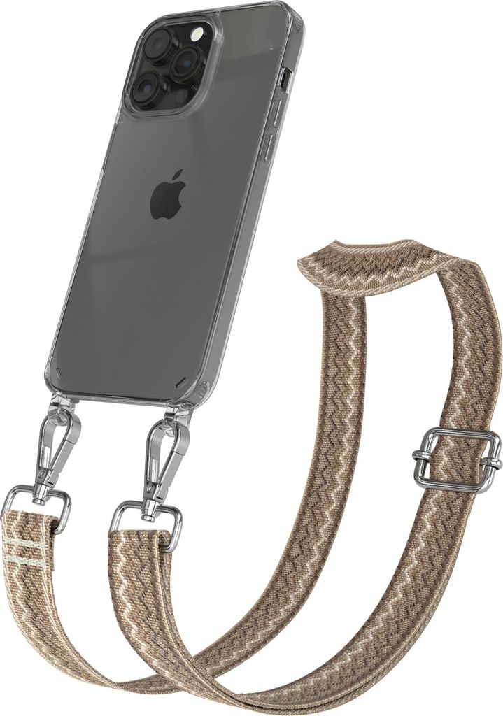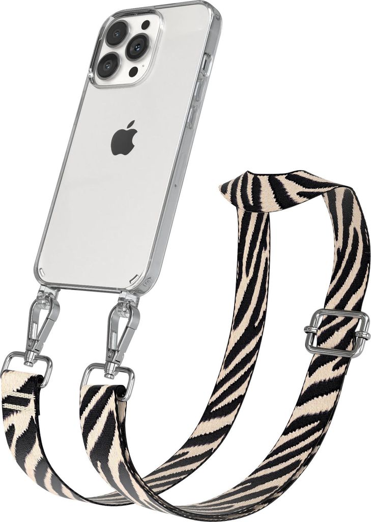 Apple iPhone 13 Pro Chain Eyelets Slim Neck Strap Set Zebra Style 13 Black/Taupe 06 Metall Silver