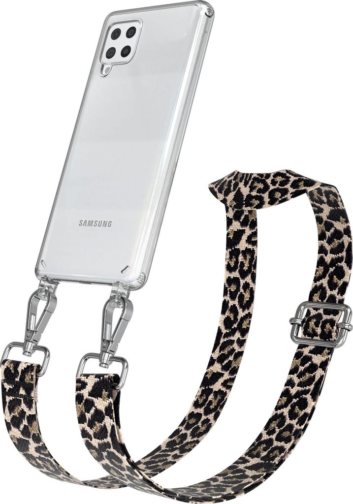 Samsung Galaxy A42 5G Chain Eyelets Slim Neck Strap Set Leo Style 13 Black/Taupe 03 Metall Silver
