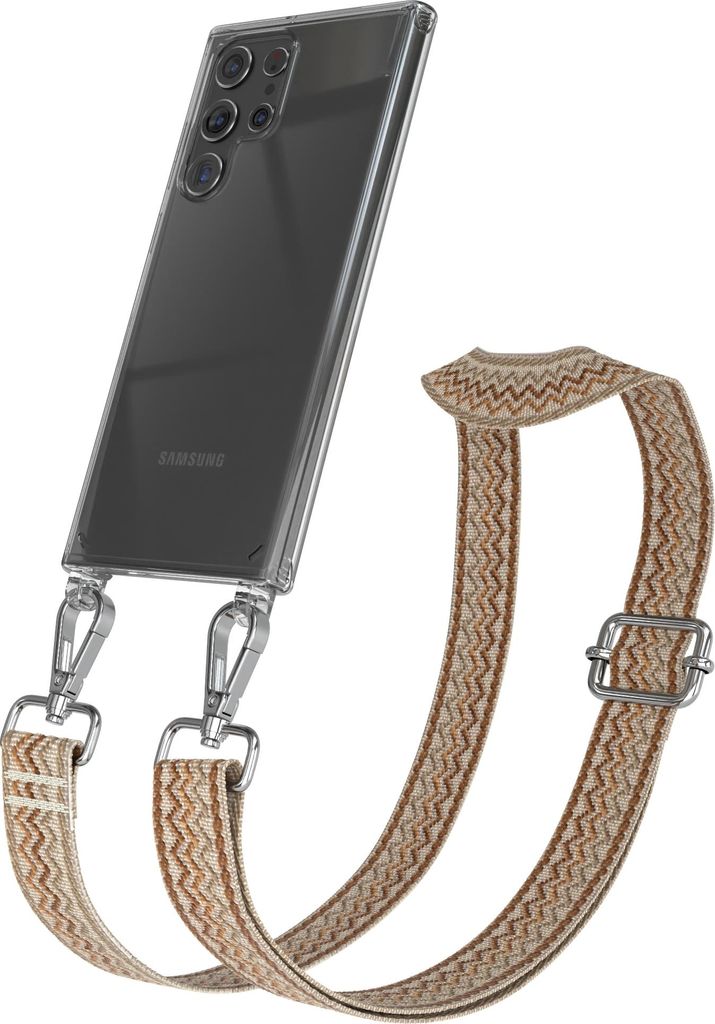 Samsung Galaxy S22 Ultra 5G Chain Eyelets Slim Neck Strap Set Wave Style 07 Beige/Brown 02 Metall Silver