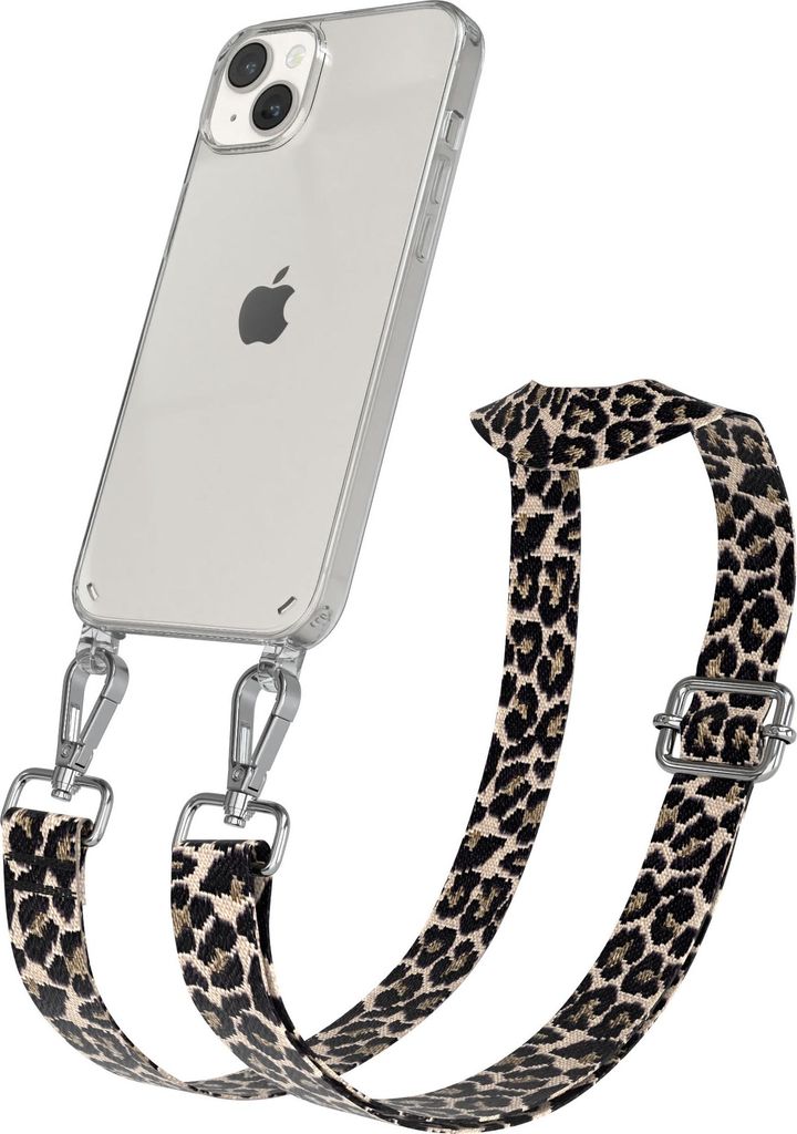 Apple iPhone 14 Plus Chain Eyelets Slim Neck Strap Set Leo Style 13 Black/Taupe 03 Metall Silver