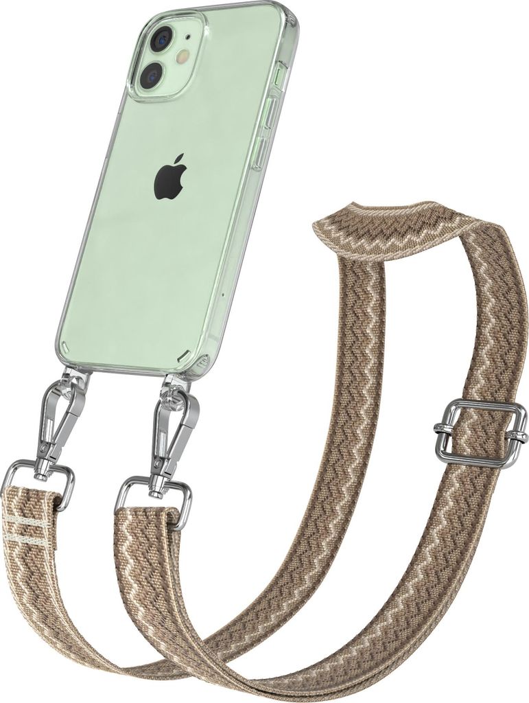Apple iPhone 12 Mini Chain Eyelets Slim Neck Strap Set Wave Style 07 light Brown/Brown 01 Metall Silver