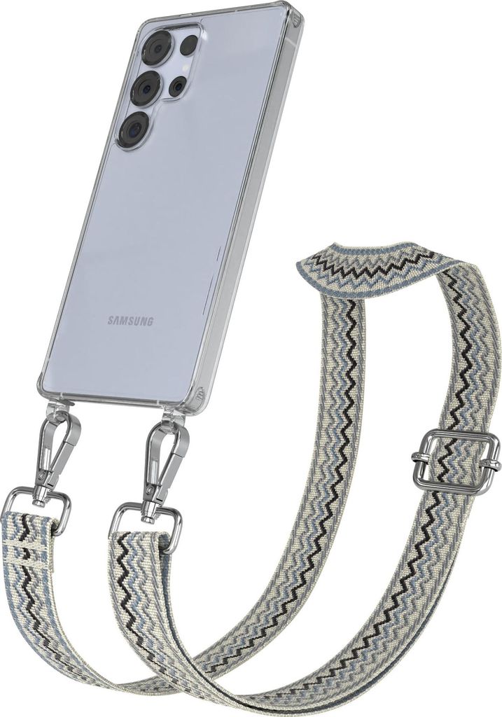 Samsung Galaxy S25 Ultra Chain Eyelets Slim Neck Strap Set Wave Style 07 Beige/Blue 03 Metall Silver