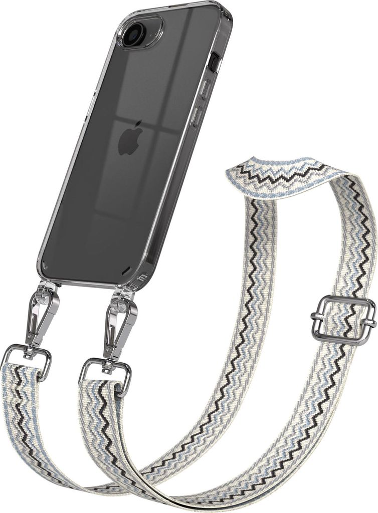Apple iPhone 16e / 17e Chain Eyelets Slim Neck Strap Set Wave Style 07 Beige/Blue 03 Metall Silver