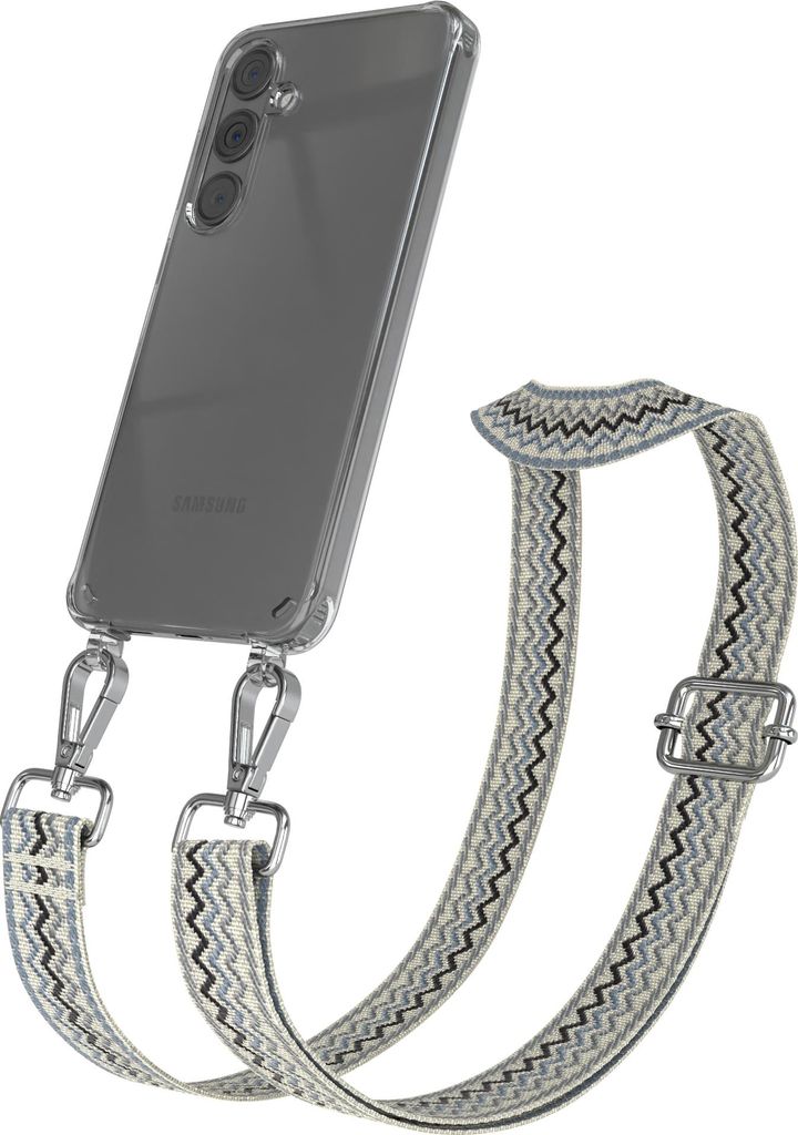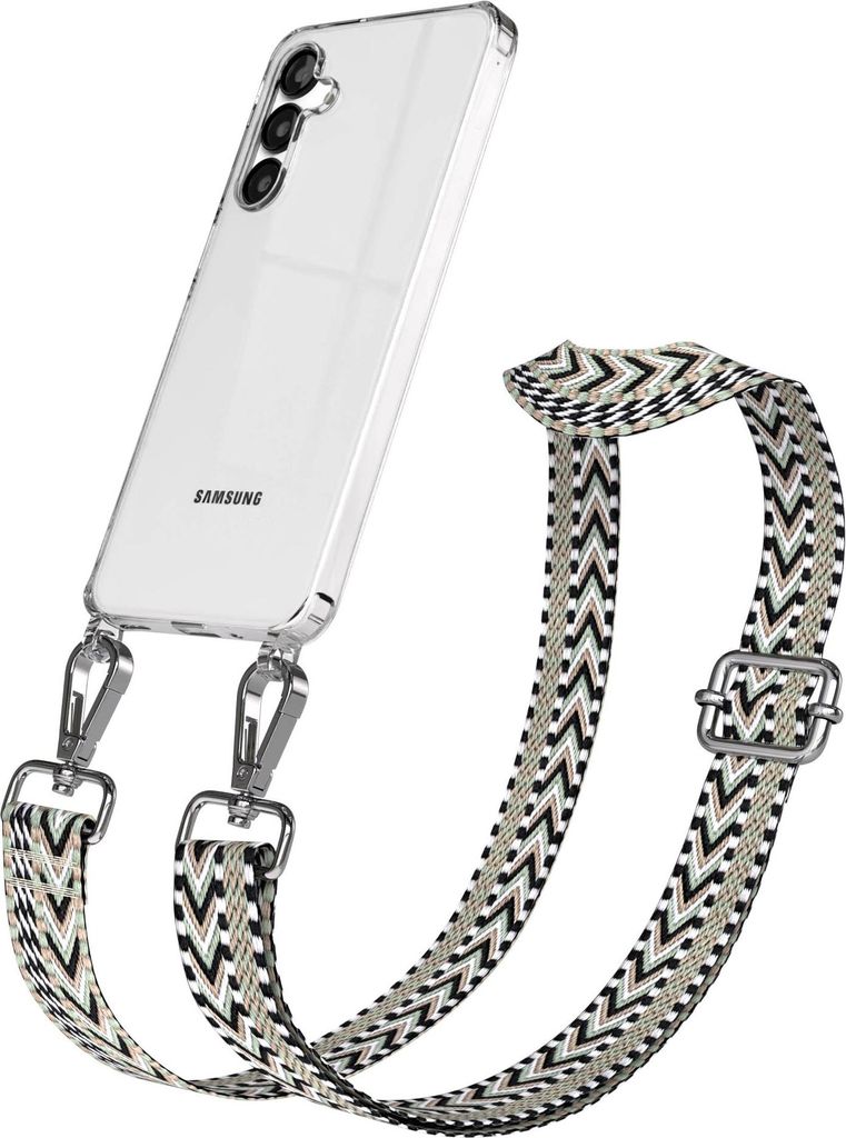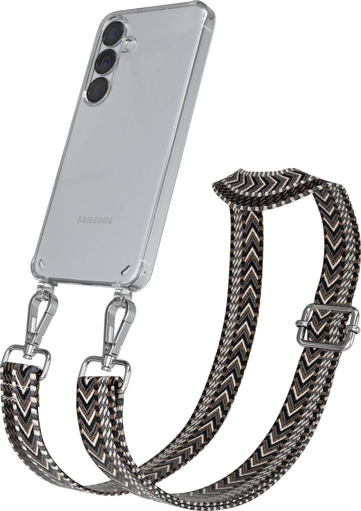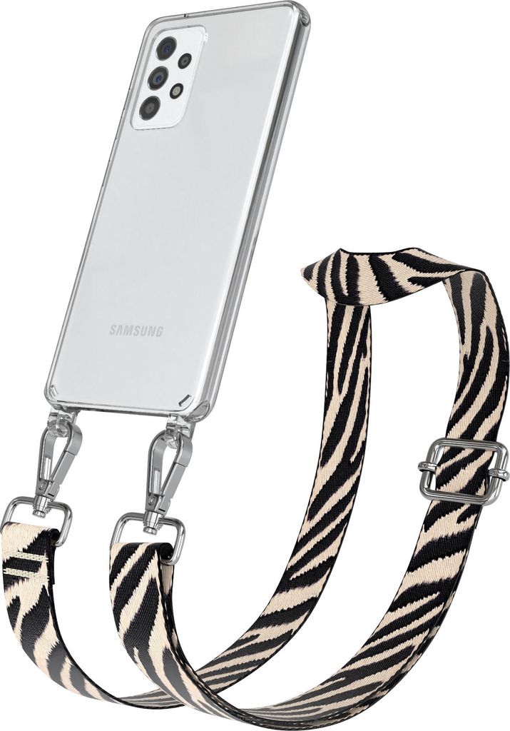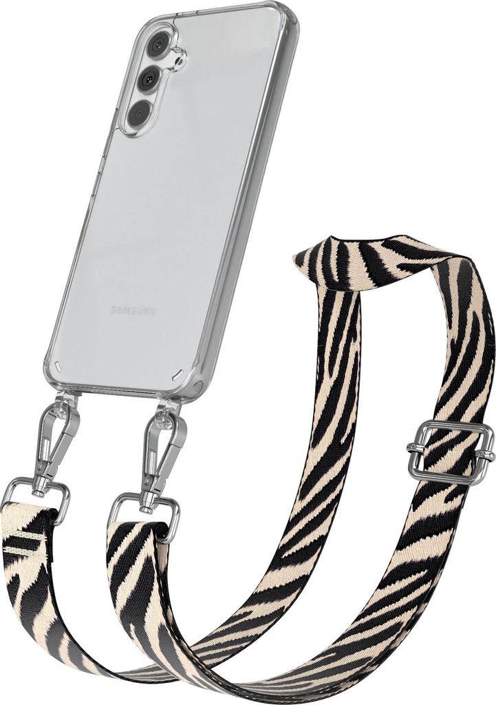 Samsung Galaxy A54 Chain Eyelets Slim Neck Strap Set Zebra Style 13 Black/Taupe 06 Metall Silver