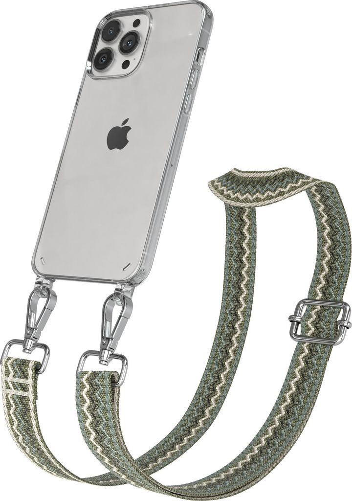 Apple iPhone 13 Pro Max Chain Eyelets Slim Neck Strap Set Wave Style 07 Green/Beige 04 Metall Silver