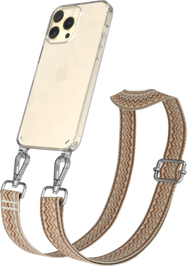 Apple iPhone 14 Pro Max Chain Eyelets Slim Neck Strap Set Wave Style 07 Beige/Brown 02 Metall Silver