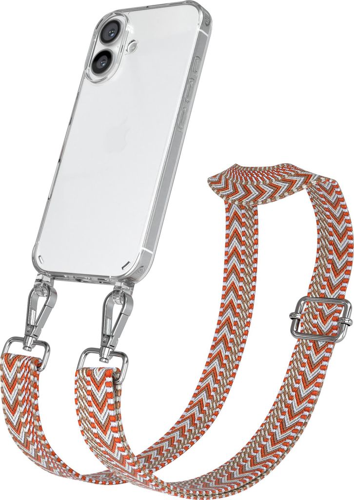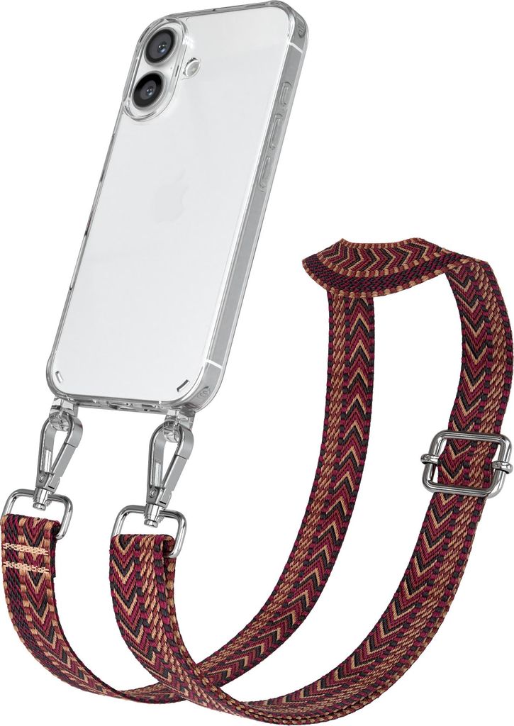 Apple iPhone 16 Chain Eyelets Slim Neck Strap Set Zig Zag Red - Brown 4 Metall Silver