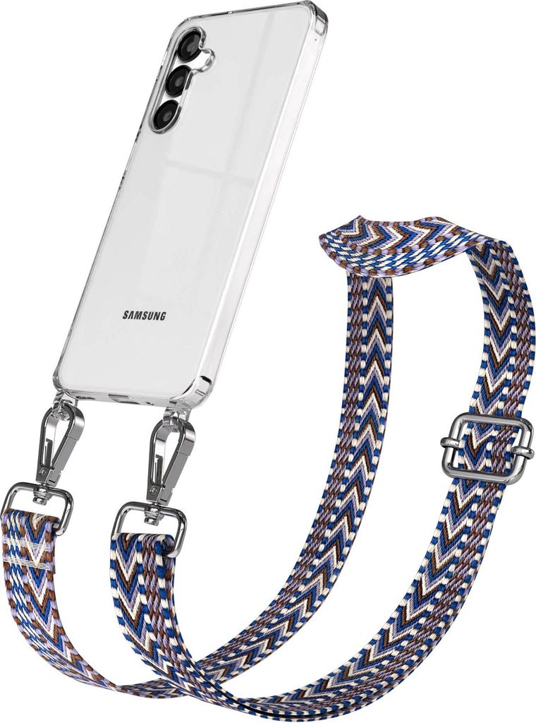 Samsung Galaxy A54 Chain Eyelets Slim Neck Strap Set Wave Style 07 Beige/Blue 03 Metall Silver