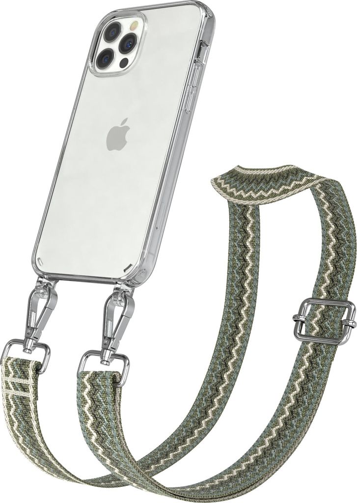 Apple iPhone 12 / 12 Pro Chain Eyelets Slim Neck Strap Set Wave Style 07 Green/Beige 04 Metall Silver