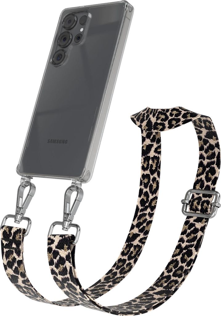 Samsung Galaxy S25 Ultra Chain Eyelets Slim Neck Strap Set Leo Style 13 Black/Taupe 03 Metall Silver