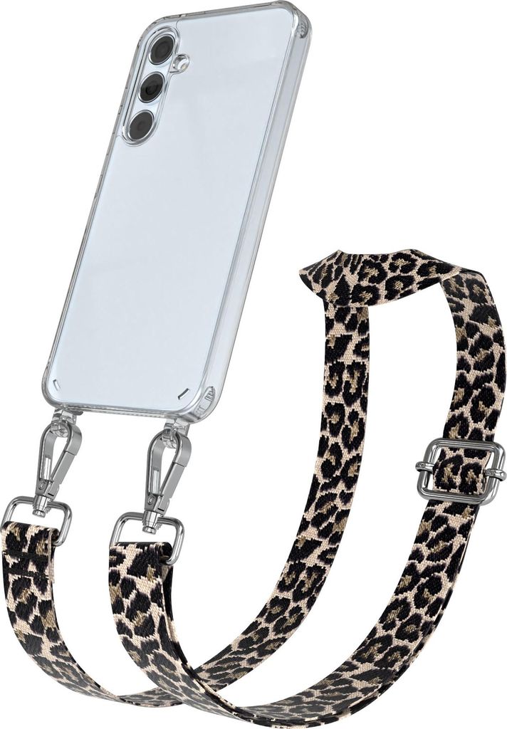 Samsung Galaxy A56 Chain Eyelets Slim Neck Strap Set Leo Style 13 Black/Brown 02 Metall Silver