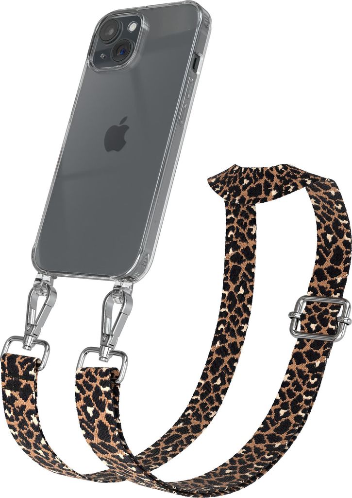 Apple iPhone 15 Chain Eyelets Slim Neck Strap Set Leo Style 13 Black/Brown 02 Metall Silver