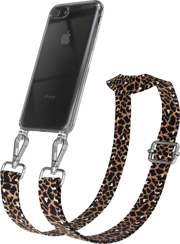Apple iPhone SE (2022 / 2020) / iPhone 8 / 7 Chain Eyelets Slim Neck Strap Set Leo Style 13 Black/Brown 02 Metall Silver