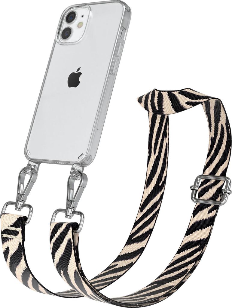 Apple iPhone 12 Mini Chain Eyelets Slim Neck Strap Set Zebra Style 13 Black/Taupe 06 Metall Silver