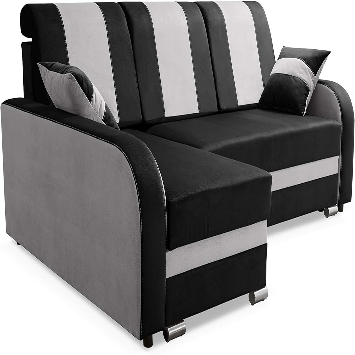 Robin BARI Ecksofa mit Schlaffunktion, Sofa mit Schlaffunktion, Schlafsofa mit Bettkasten und Kissen, Freistehende Eckcouch in L-Form (Black-Silver)