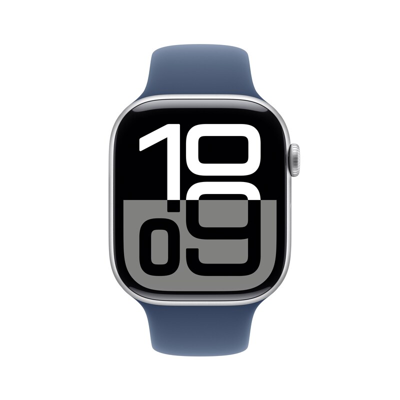 Apple Watch Series 10 GPS 42mm Silver Aluminium Case mit Denim Sport Band
