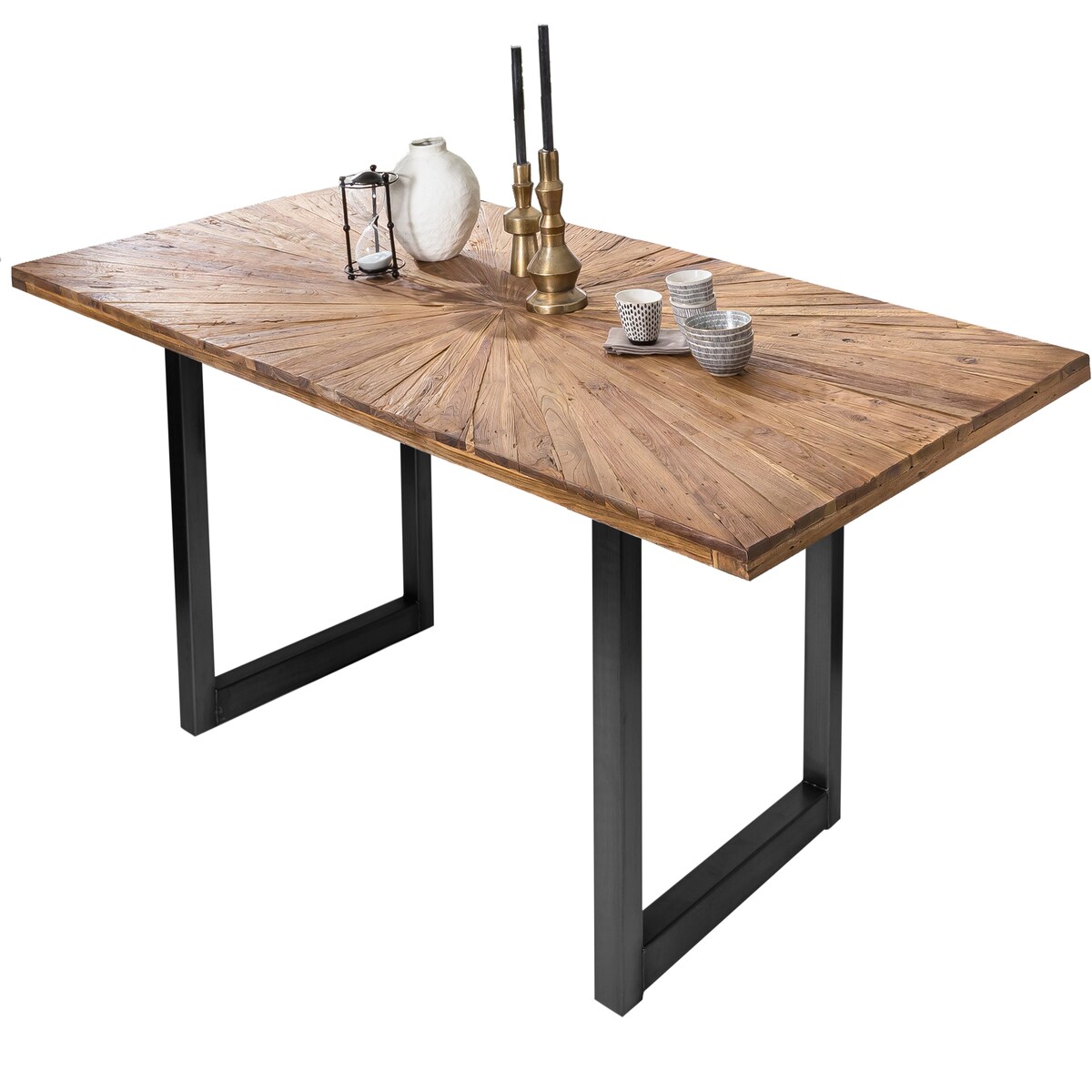 SIT Möbel Esstisch 160 x 90 cm | Platte recyceltes Teak natur | Gestell Metall antikschwarz | B 160 x T 90 x H 78 cm | 15500-11 | Serie TABLES & CO