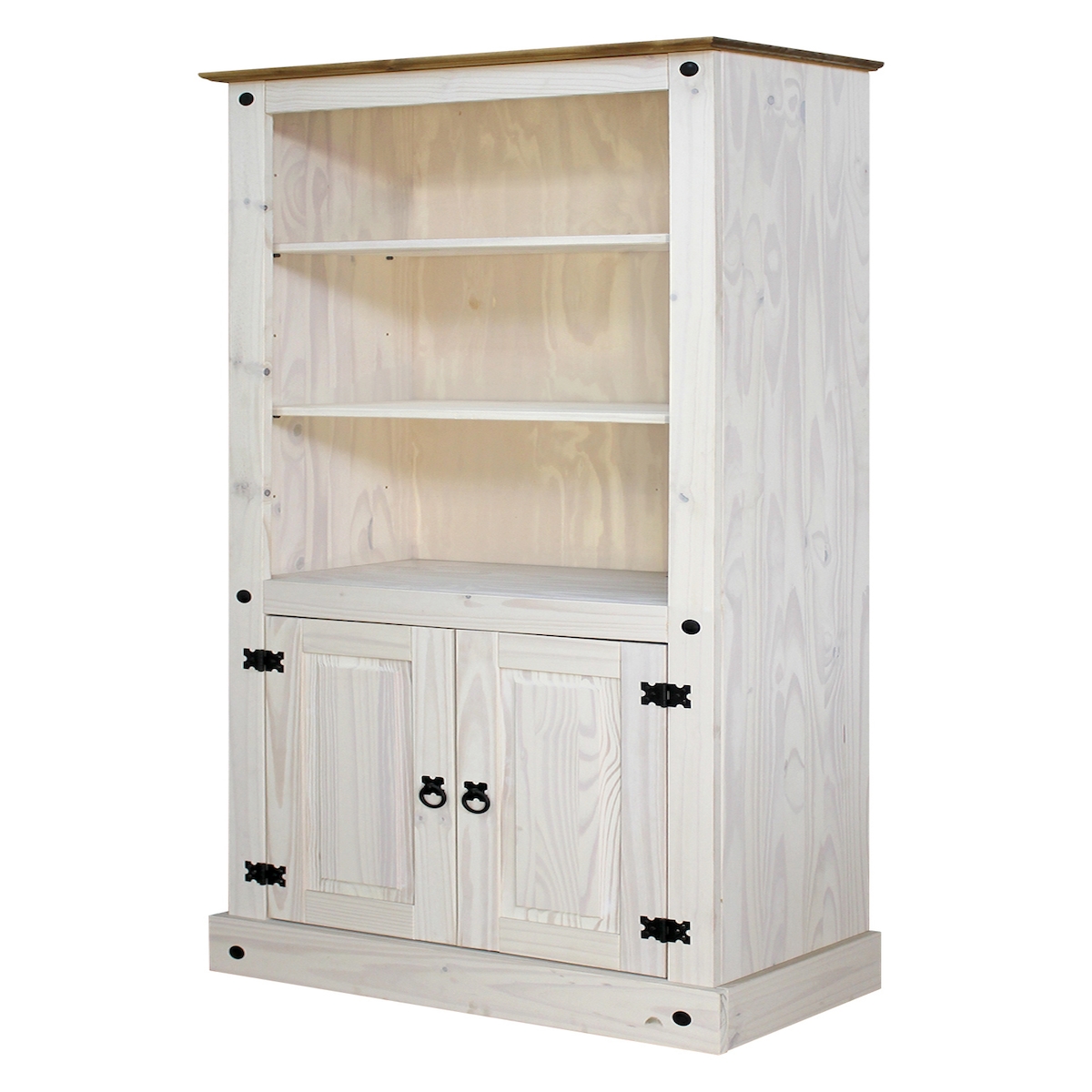 SIT Möbel Bücherregal | 2 Türen, 3 offene Fächer | Kiefer-Holz massiv | Weiß | B 81 x T 38 x H 177 cm | 19001-11 | Serie REGAL
