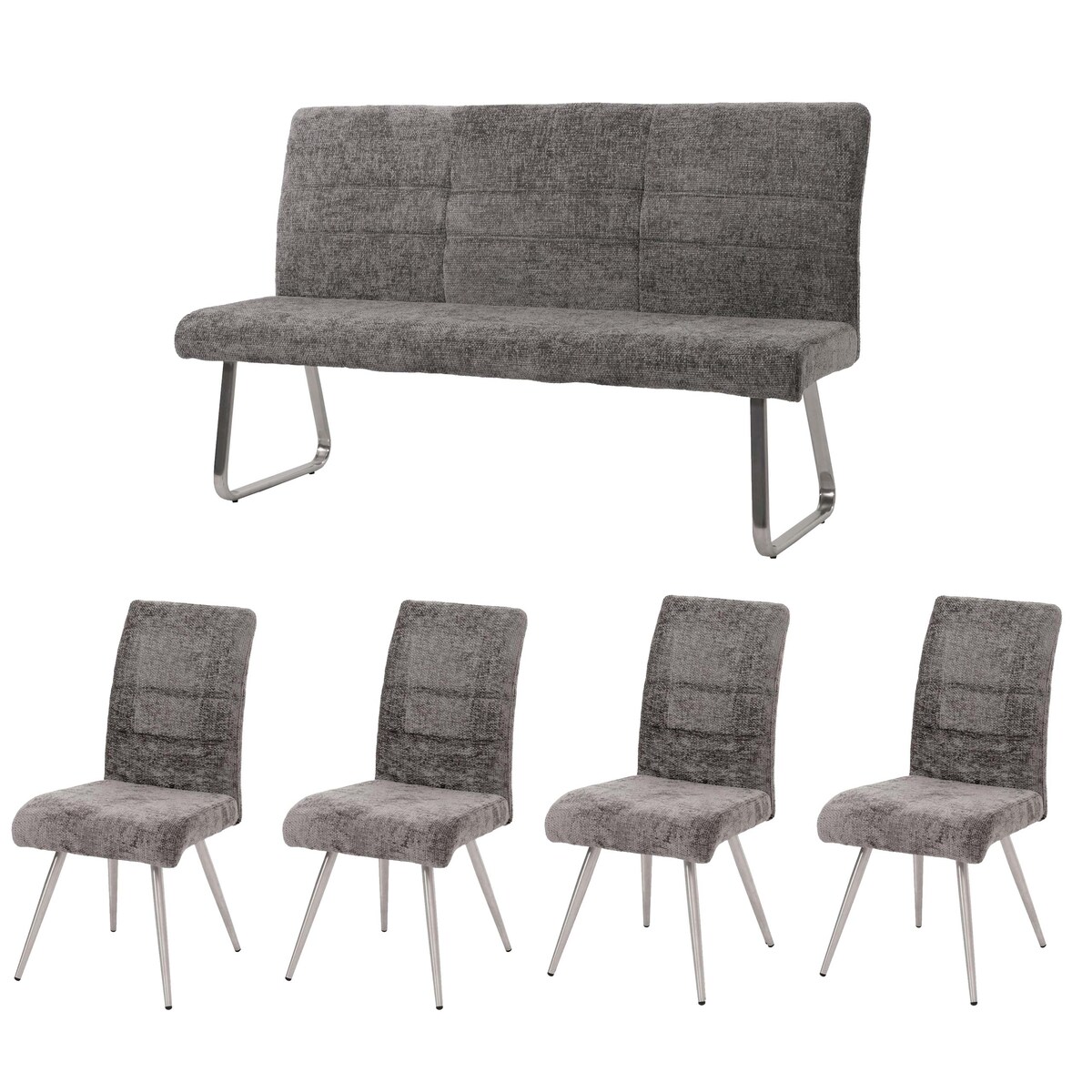 Mendler Esszimmer-Set HWC-G55, 4er-Set Stuhl + Sitzbank 160cm, Edelstahl gebürstet Stoff/Textil Chenille ~ dunkelgrau