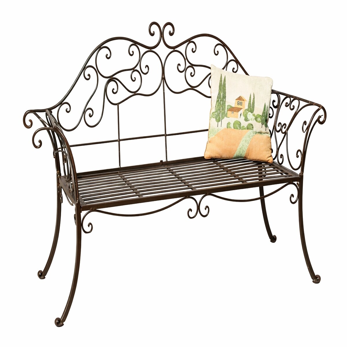 DanDiBo Gartenbank Metall Wetterfest Braun 120 cm Bank Sitzbank 2-Sitzer DY140486 Metallgartenbank mit Rückenlehne Parkbank Garten Antik