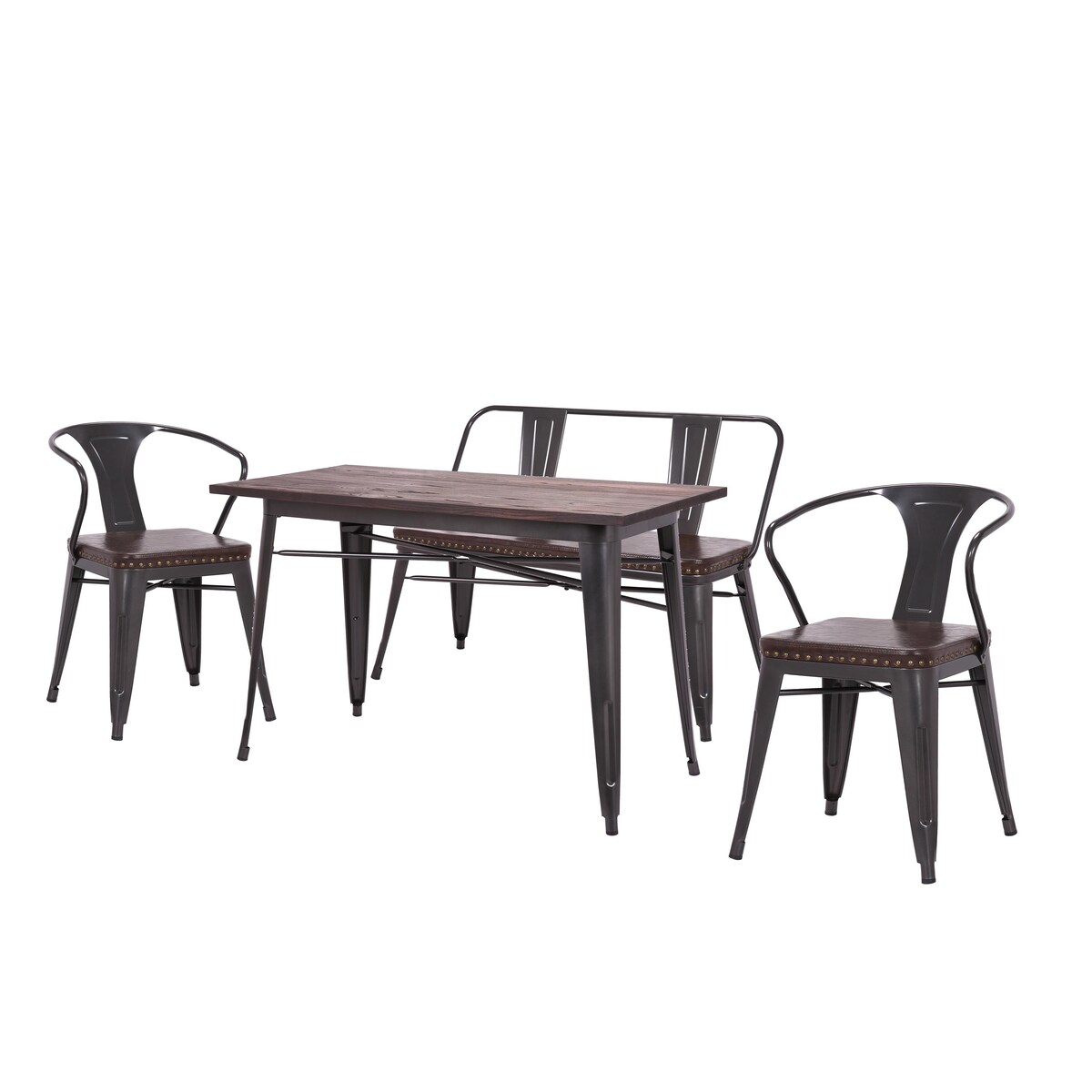 Mendler Esszimmer-Set HWC-H10, 2xEsszimmerstuhl Sitzbank Esszimmertisch Kunstleder Ulme Holz MVG Industrial Gastronomie ~ braun