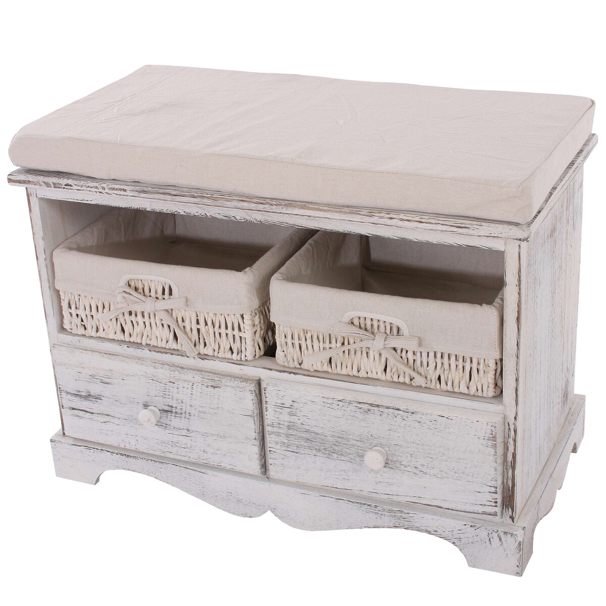 Garderobe mit Sitzbank Kommode mit 2 Körben 42x62x33cm, Shabby-Look, Vintage weiß