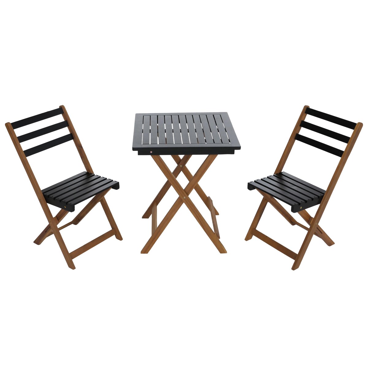 Mendler Garnitur HWC-P71, Sitzgruppe Lounge-Set Garten 2x Stuhl Tisch, Akazie Holz klappbar ~ natur-schwarz