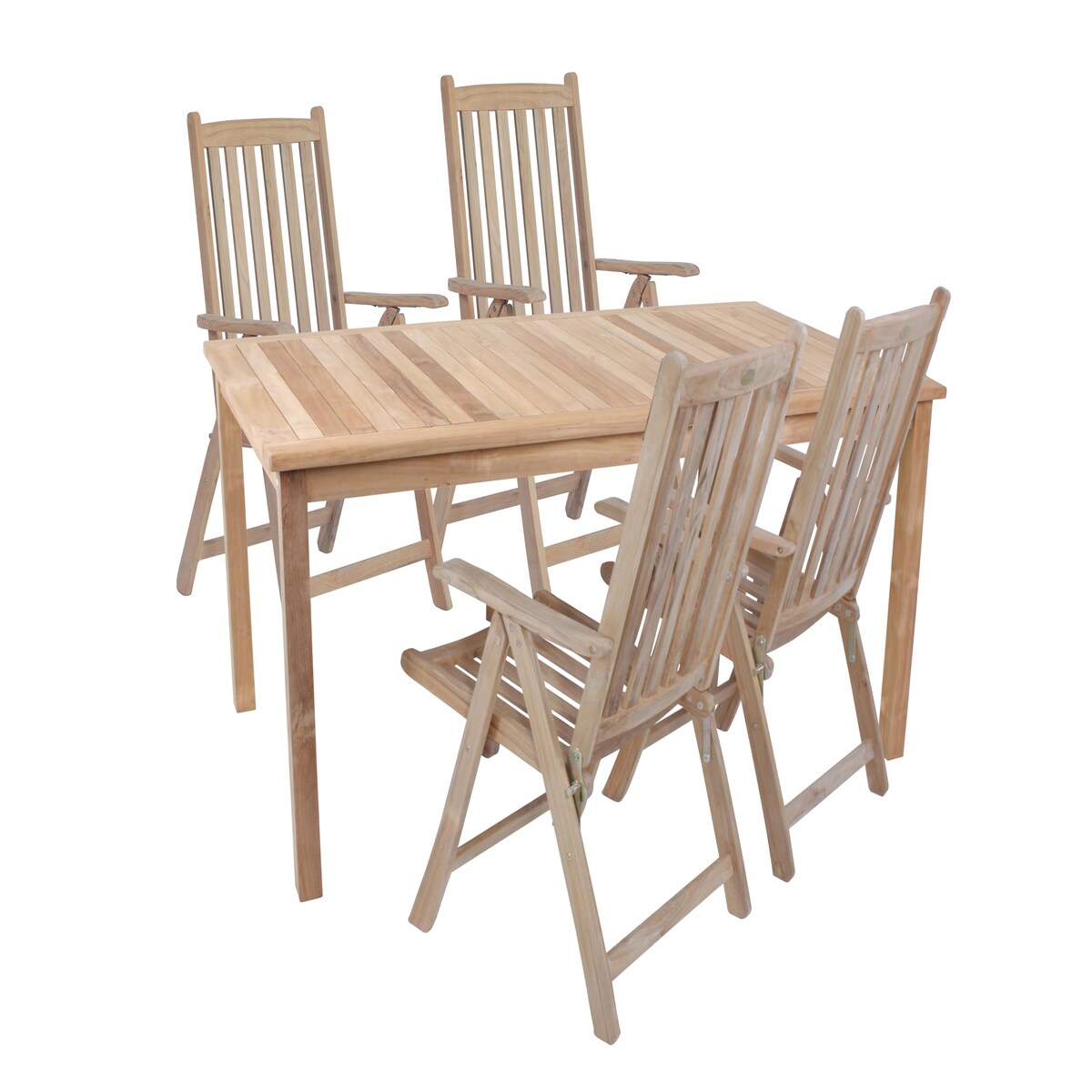 DELUKE Garten-Sitzgruppe MAIKE 05 5-tlg. - Teak, Teakbraun | Gartenmöbel-Set Gartengarnitur Garten-Essgruppe mit Stühlen A und Esstisch