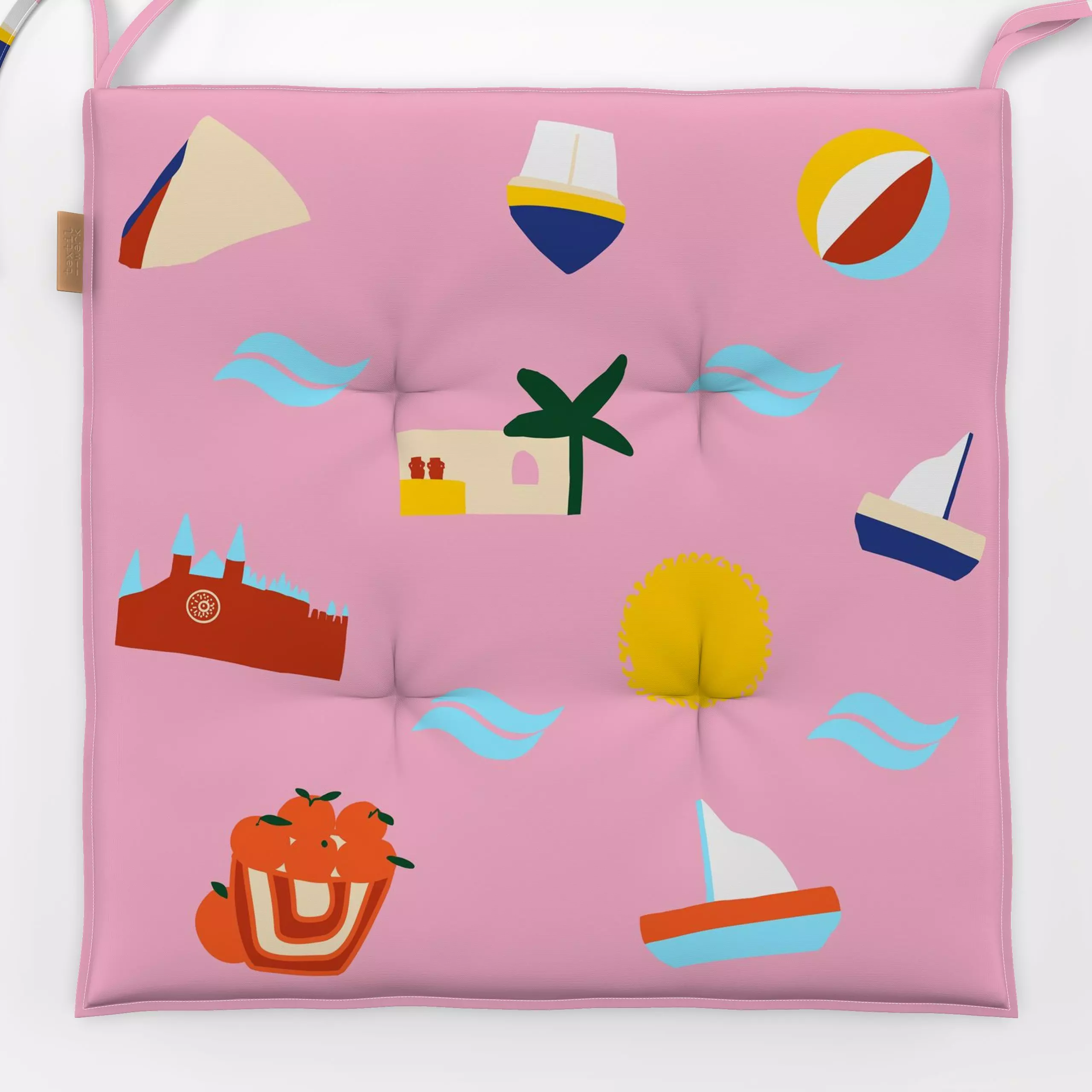 Sitzkissen Mallorca im Mittelmeer No2 - Sommer, Symbole & Muster, Reise - von „Ursula Tücks"; Kissen, Palmen, Meer, Sonne, U...