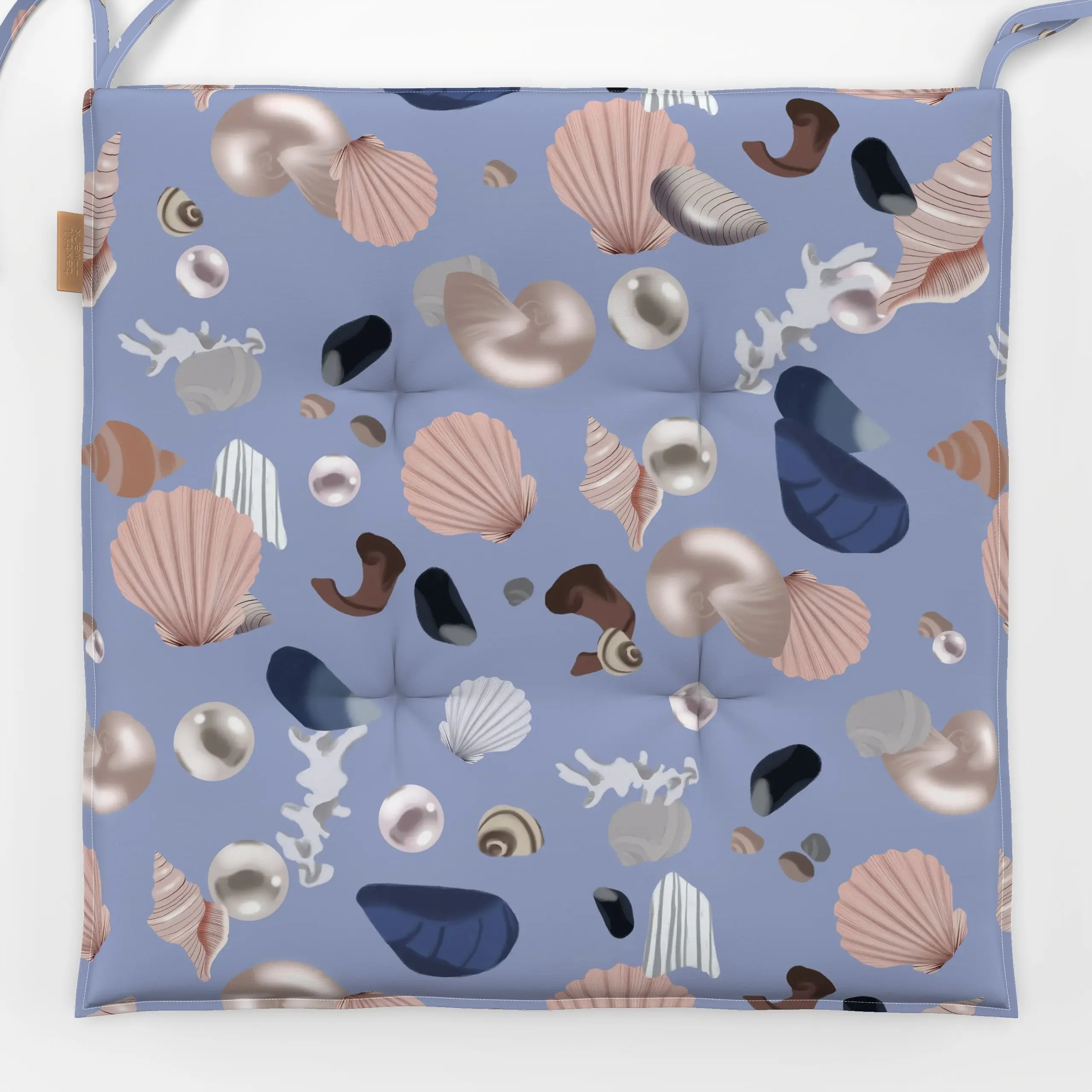 Sitzkissen Muschel Pattern Blau - Natur & Landschaft - von „Sophie Augustin Illustration"; Meer, Strand, Meerestiere, Unterw...