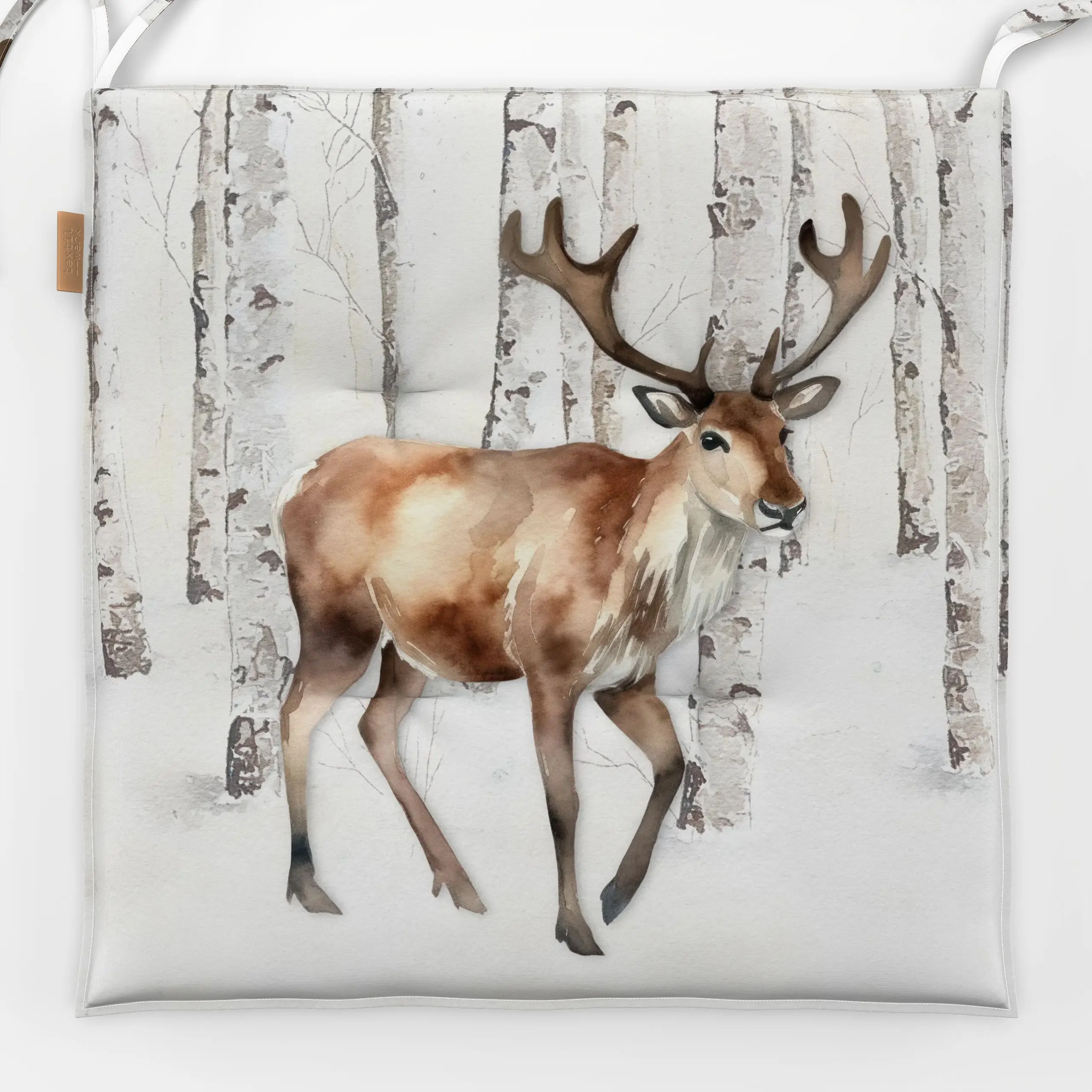 Sitzkissen Winterwald Rentier Hirsch - Tiere, Weihnachten, Winter - von „Monika Strigel"; Wald, Rentier, Weihnachten, Hirsch...