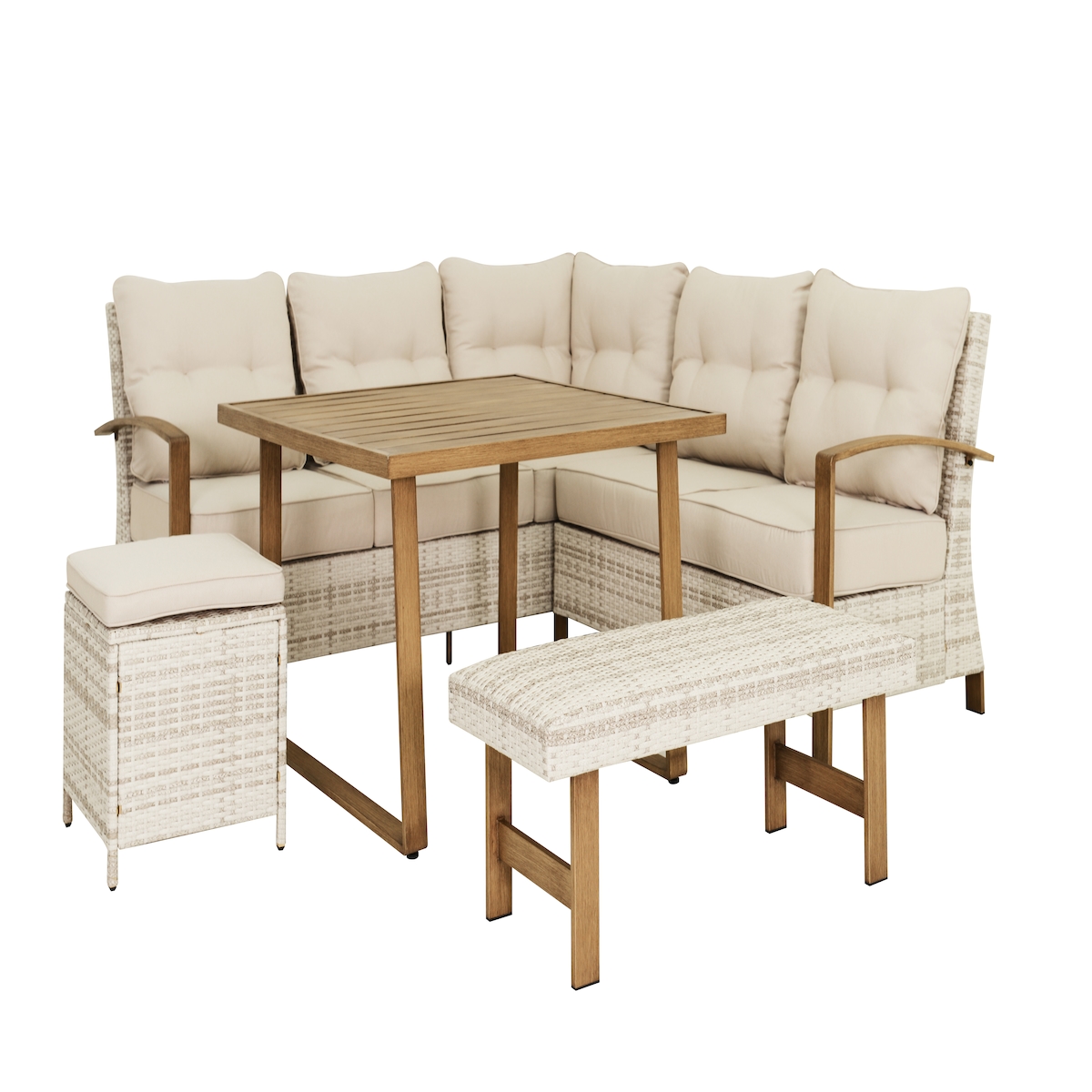 Tarrington House Essgruppe 5-tlg. Koroba, PE-Rattan/Stahl, 2 Sitzsofas, 1 Sitzbank, 1 Polsterhocker, 1 Tisch, natur