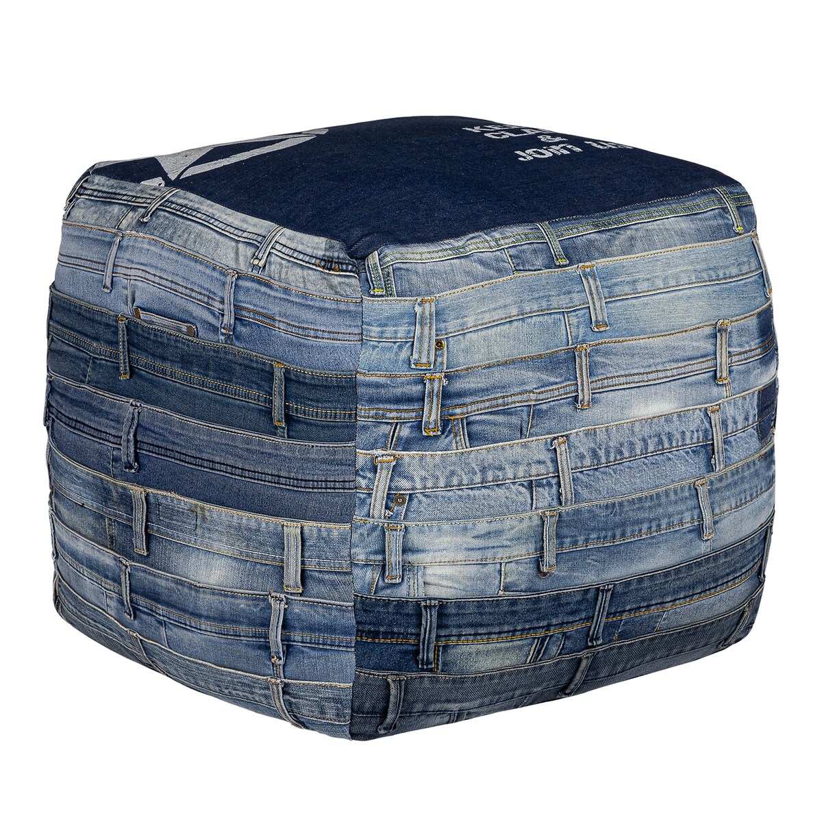 WOMO-DESIGN Sitzwürfel Pittsburgh 45 cm Blau – handgefertigt aus Jeans, Baumwollfüllung, quadratischer Sitzpouf / Sitzhocker