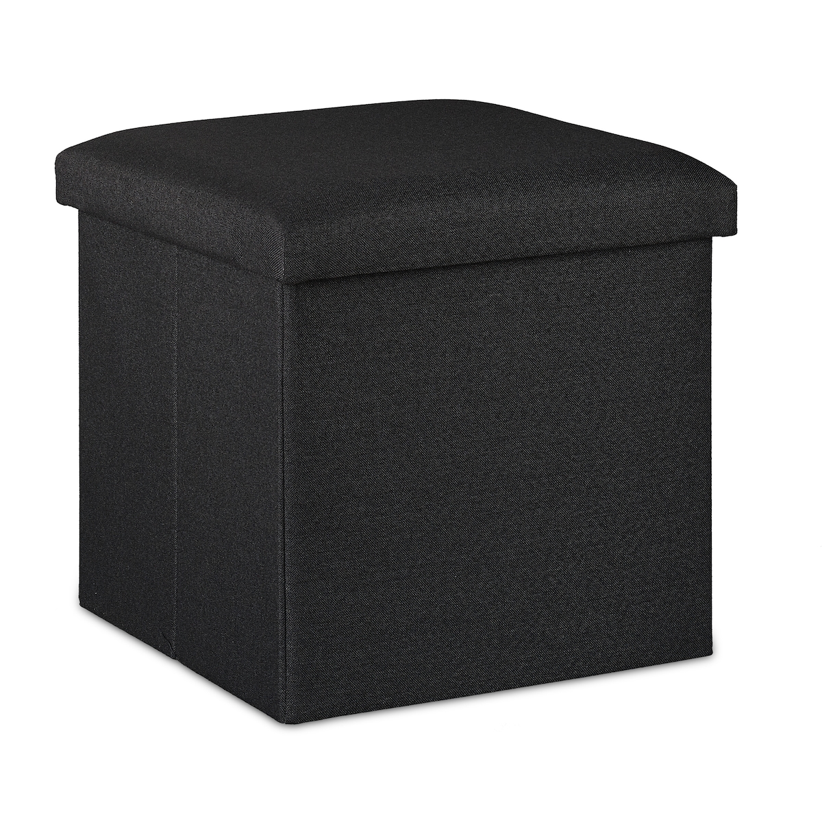 Relaxdays Sitzhocker mit Stauraum, faltbar, weich gepolstert, eckig, Stoff, Sitzwürfel, HBT 37 x 37,5 x 37,5 cm, schwarz
