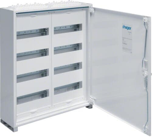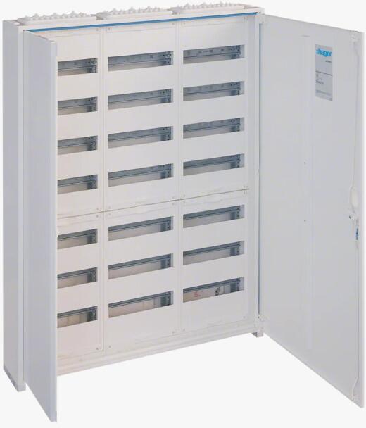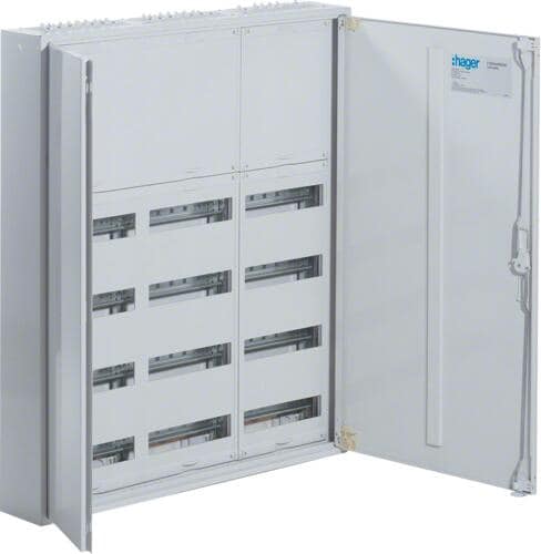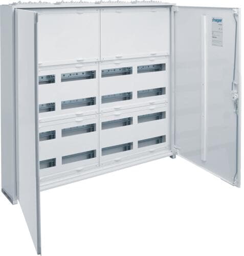 Hager FWB34D Feldverteiler, AP, univ., IP44, SKII, 144PLE, 4x3 Reihen 500x1050x161mm, leer mit Tür