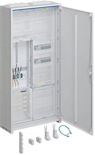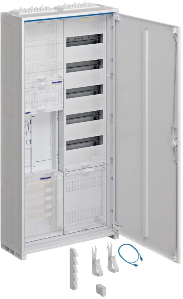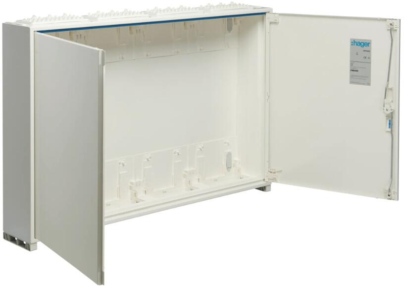 Hager FWB62K1 Feldverteiler AP, univers, IP31, SKII, 72PLE+Mediafeld, mit geschlitzer Tür, 950x550x161mm, QuickConnect