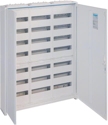 Hager FWB63N Feldverteiler AP, univers, IP44, SKII, 144PLE, 3x6 Reihen, Hutschienen-Abstand 150mm, 950x800x161mm