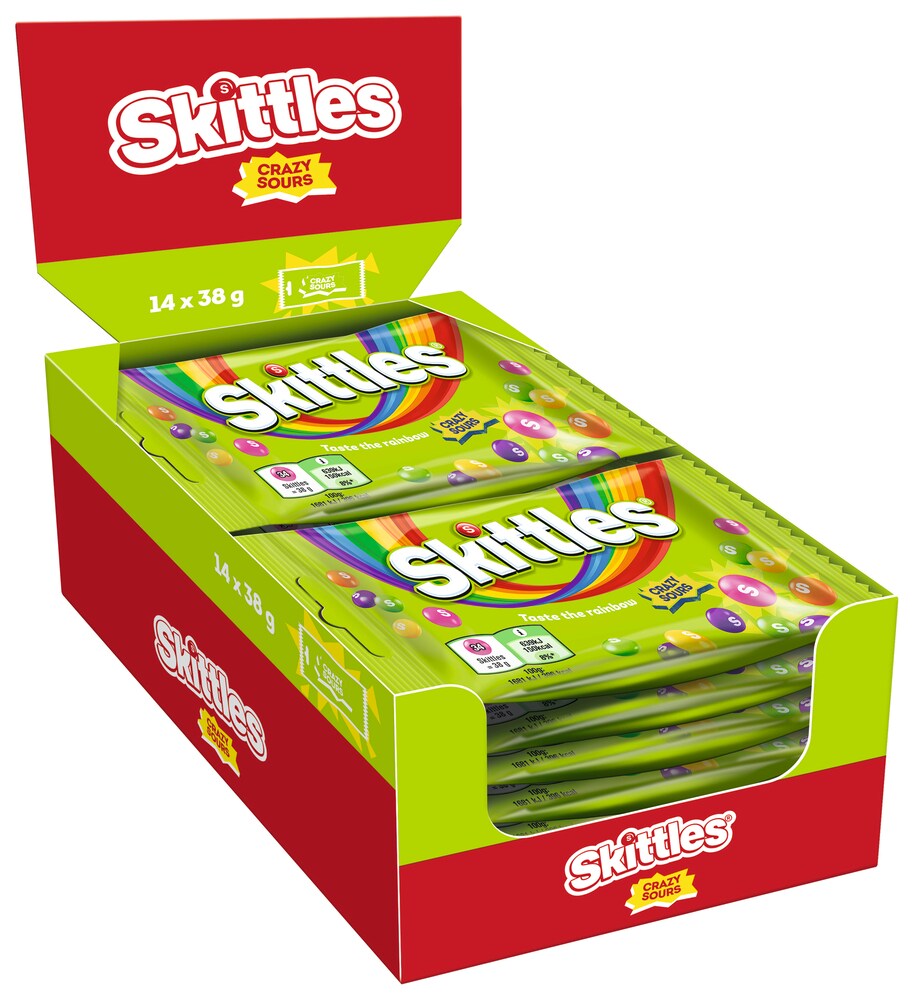Skittles Crazy Sours Kaubonbons 14 x 38g (0,532kg)
