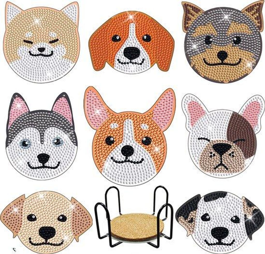 Onderzetters-Set aus 8 - Rund - mit Halter - Onderzetters-Design - Glasunterstützer - Diamantmalerei-Unterstützer - – Anti-slip – Absorbiere...