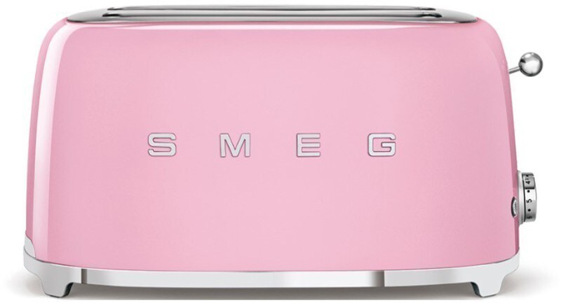 SMEG Edelstahl Toaster 4 Scheiben 6 Modi, Hochglanz, Auftaufunkton, 4 kurze Schlitze, für 4 Scheiben, 2000,00 W, Auftauen, Rösten, Stopp - Pink