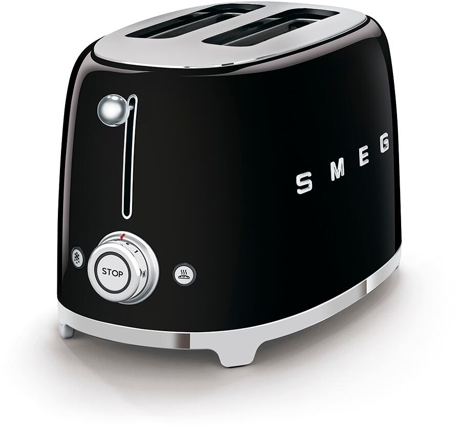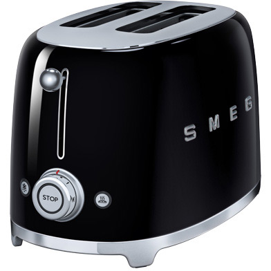 SMEG Edelstahl Toaster 4 Scheiben 6 Modi, Hochglanz, Auftaufunkton, 4 kurze Schlitze, für 4 Scheiben, 2000,00 W, Auftauen, Rösten, Stopp - Schwarz