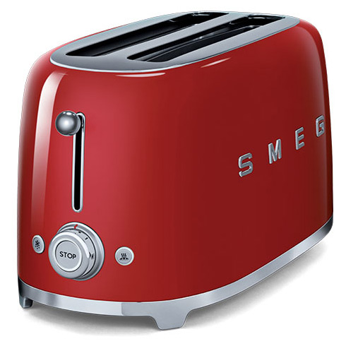 SMEG Edelstahl Toaster 2 Scheiben 6 Modi, Hochglanz, Auftaufunkton, 2 kurze Schlitze, für 2 scheiben, 950,00 W, Auftauen, Rösten, Stopp - Rot