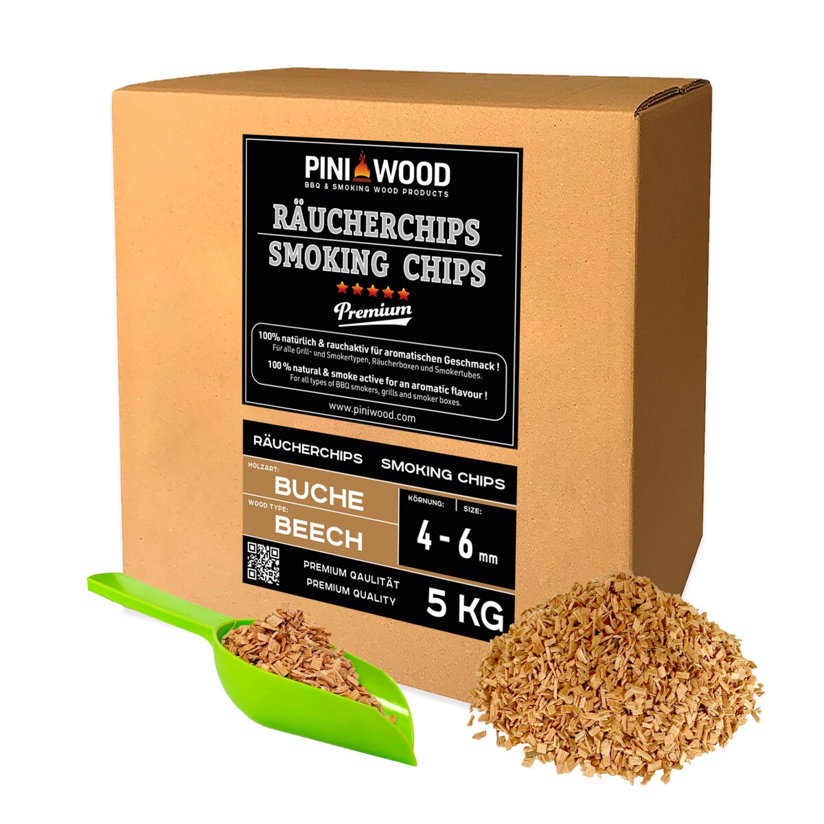 PINI 5 kg Räucherchips Buche 4-6 mm Smoking chips Räucherspäne