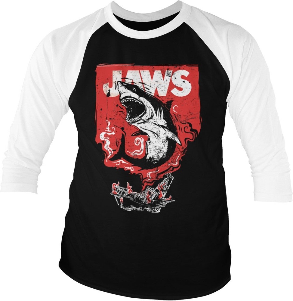 Jaws Shark Smoke Baseball 3/4 Sleeve Tee T-Shirt Weiß-Schwarz - Herren / Unisex