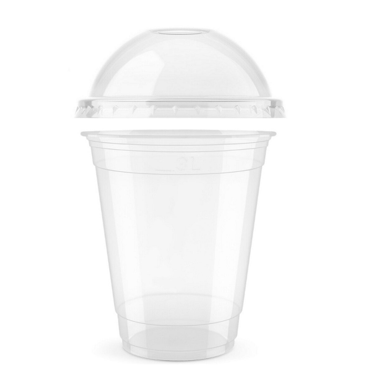 500x rPET Clear Cup, Smoothie Becher 350ml (12oz), Ø 95mm mit DOM Deckel mit Loch
